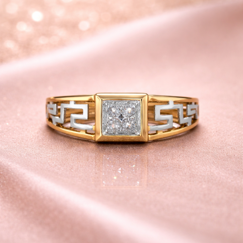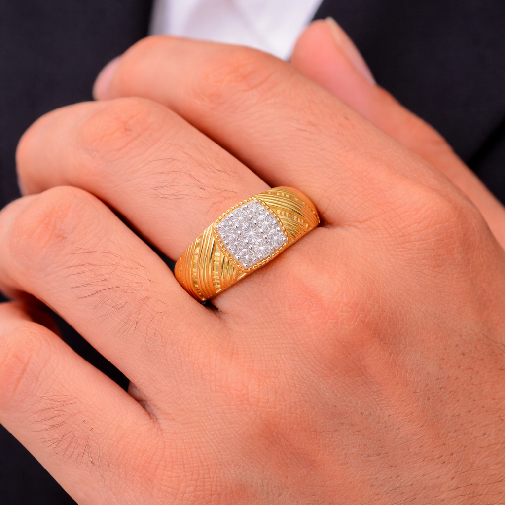Elevate your everyday style with this exquisitely designed square diamond gold ring, crafted to reflect refined luxury and modern elegance. The ring features a stunning square-shaped centerpiece adorned with brilliant diamonds arranged in a flawless grid, framed by a delicately twisted gold border for added charm.